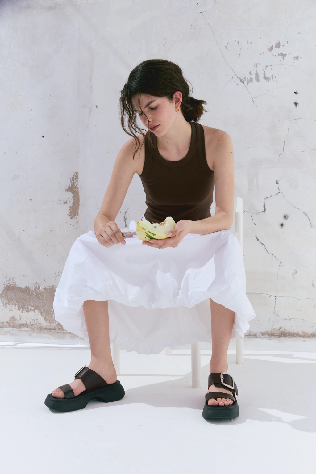 Sandalia realizada en combinacion de cueros, con detalle de hebilla niquel en capellada. El fondo es inyectado de goma, super comodo e ideal para todos los dias.